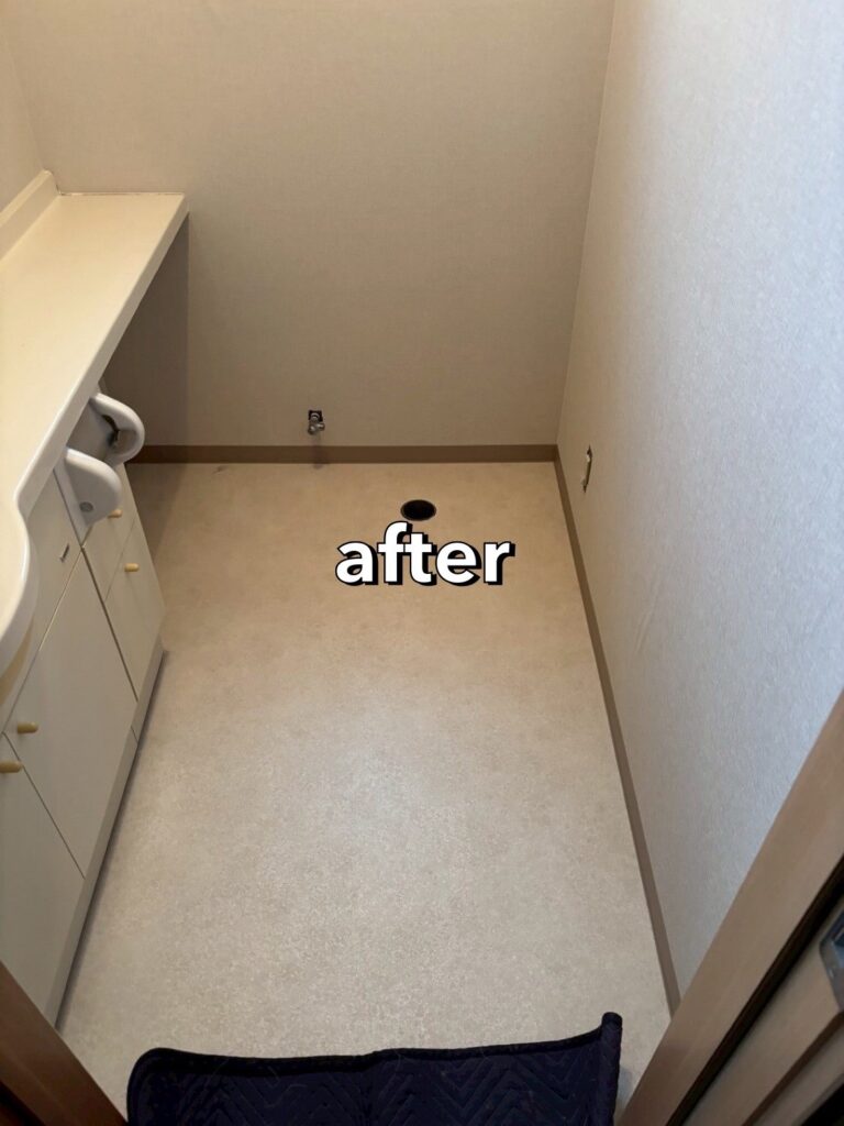 水回りに適した耐水性・耐久性のあるクッションフロアへ張り替える工事です!