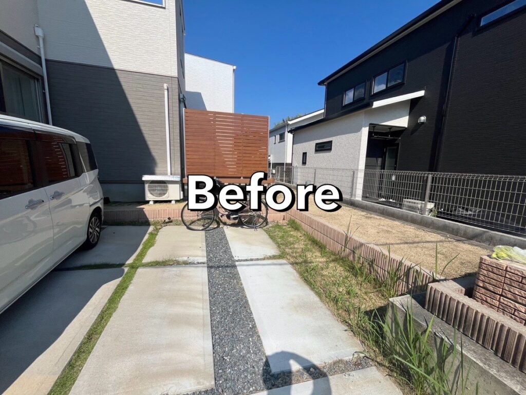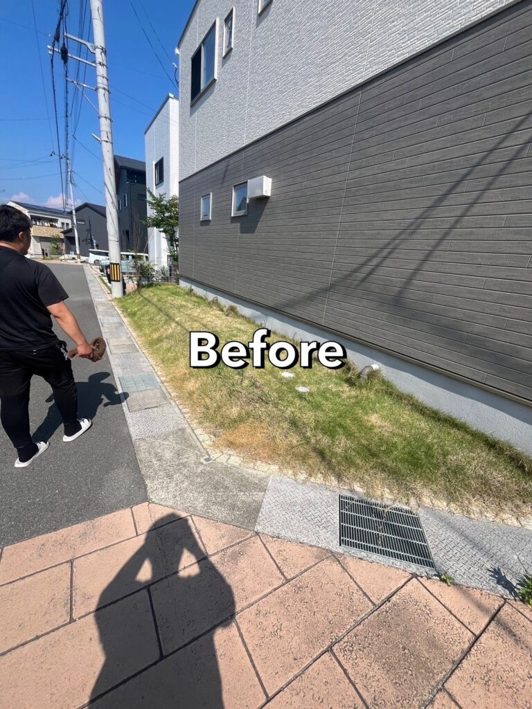 【砂地から人口芝への交換工事】砂地のままでは雑草が生えやすく、雨の後はぬかるんで使いにくいというお悩みが多くあります。人口芝に交換することで、見た目も美しくお手入れがラクになり、年中快適に過ごせるお庭