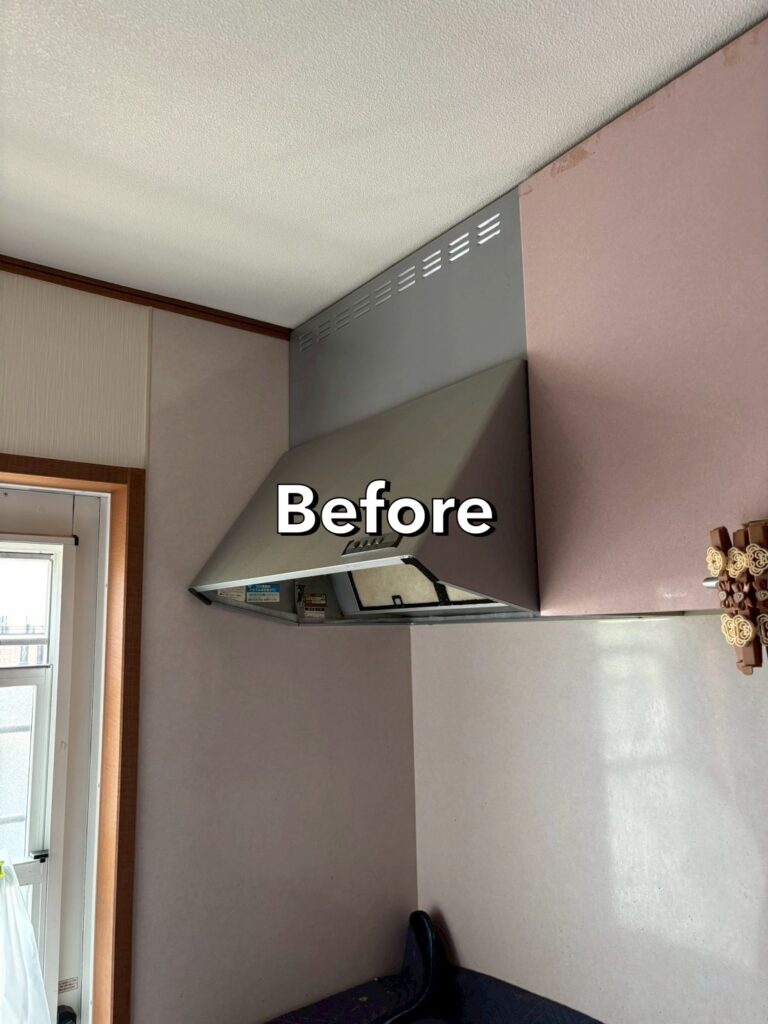 ■工事の概要レンジフード交換工事とは、古くなった換気扇やレンジフードを新しい機種に取り換える工事です!近年は「シロッコファンタイプ」や「スリム型レンジフード」が主流で、見た目もスッキリしてお手入れも簡